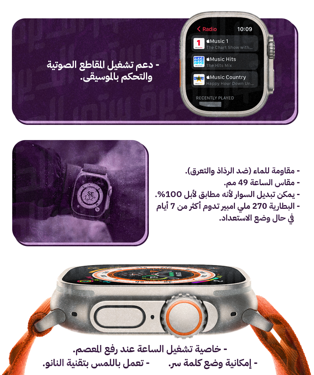 • دعم ميزة التحكم عن بعد بالجوال بمقاطع التيك توك واليوتيوب والتنقل بينها عن طريق الساعة
