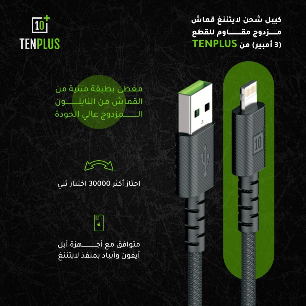 شحن لايتننغ قماش مزدوج مقاوم للقطع (3 أمبير) من TEN PLUS